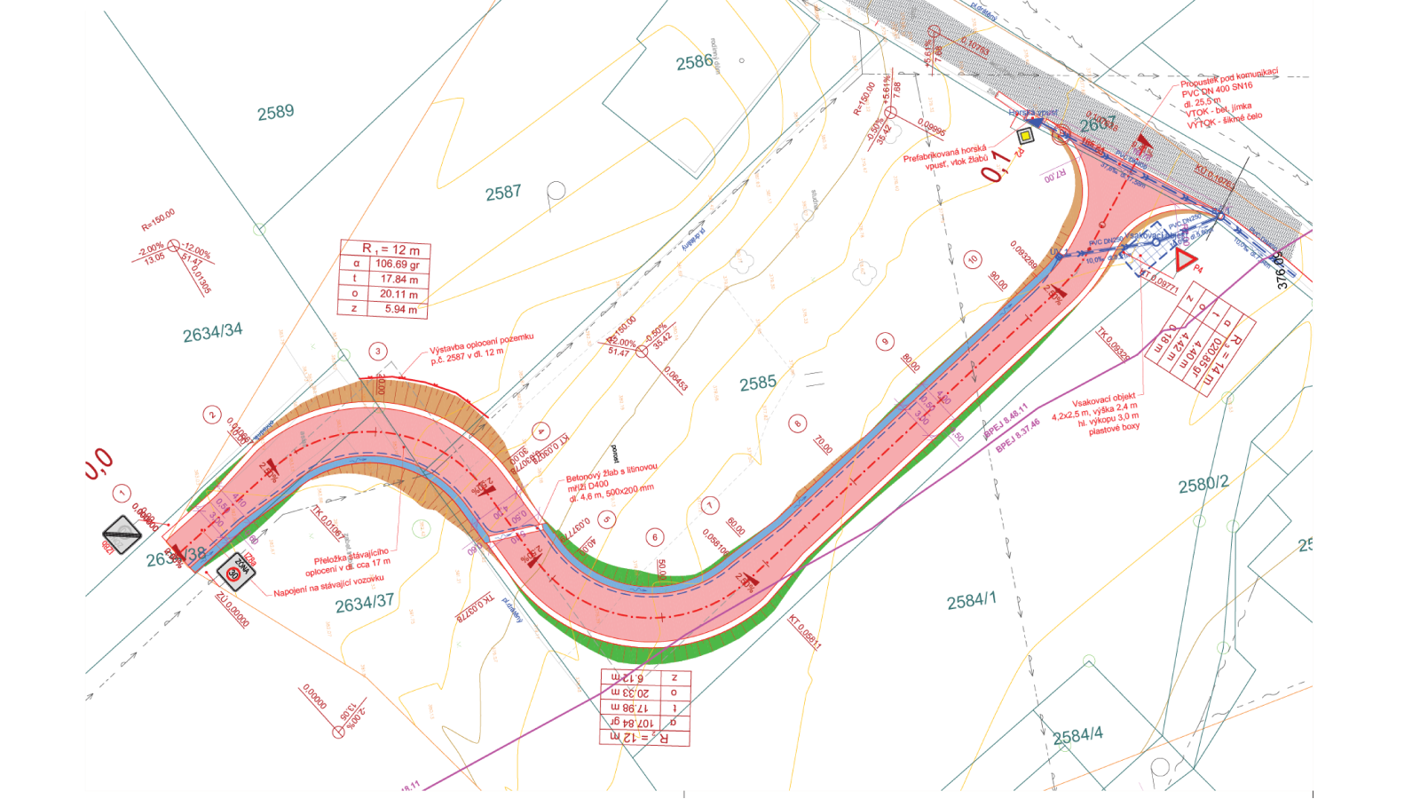 Místní komunikace je navržena v rozsahu staničení ZU km 0,000 až KU km 0,107 63, celková délka komunikace činí 107,63 m. Kategorie komunikace byla zvolena MO1k 4/4/30 dle ČSN 73 6110 s povrchem dle TP 170 kategorie D1-N2-V-PIII a oboustrannou nezpevněnou krajnicí šířky 0,5 m.