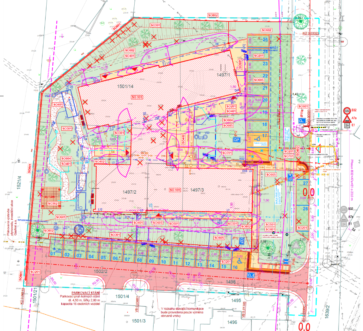 Projektová dokumentace stavebního objektu byla zpracována pod taktovkou generálního projektanta Chválek Ateliér s.r.o. Cílem projekce byl stavební objekt zpevněných ploch, tedy příjezdové účelové komunikace, parkoviště a chodníků, včetně vypracování koordinační situace celé stavby.