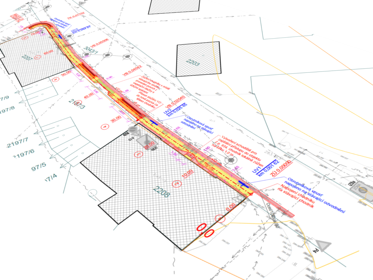 Náš tým se musel vypořádat nejen s požadavky správců sítí, do jejichž ochranným pásem stavba zasahuje, ale taktéž s námitkami vlastníků okolních nemovitostí a to primárně z důvodu zajištění přístupu do jejich nemovitostí.